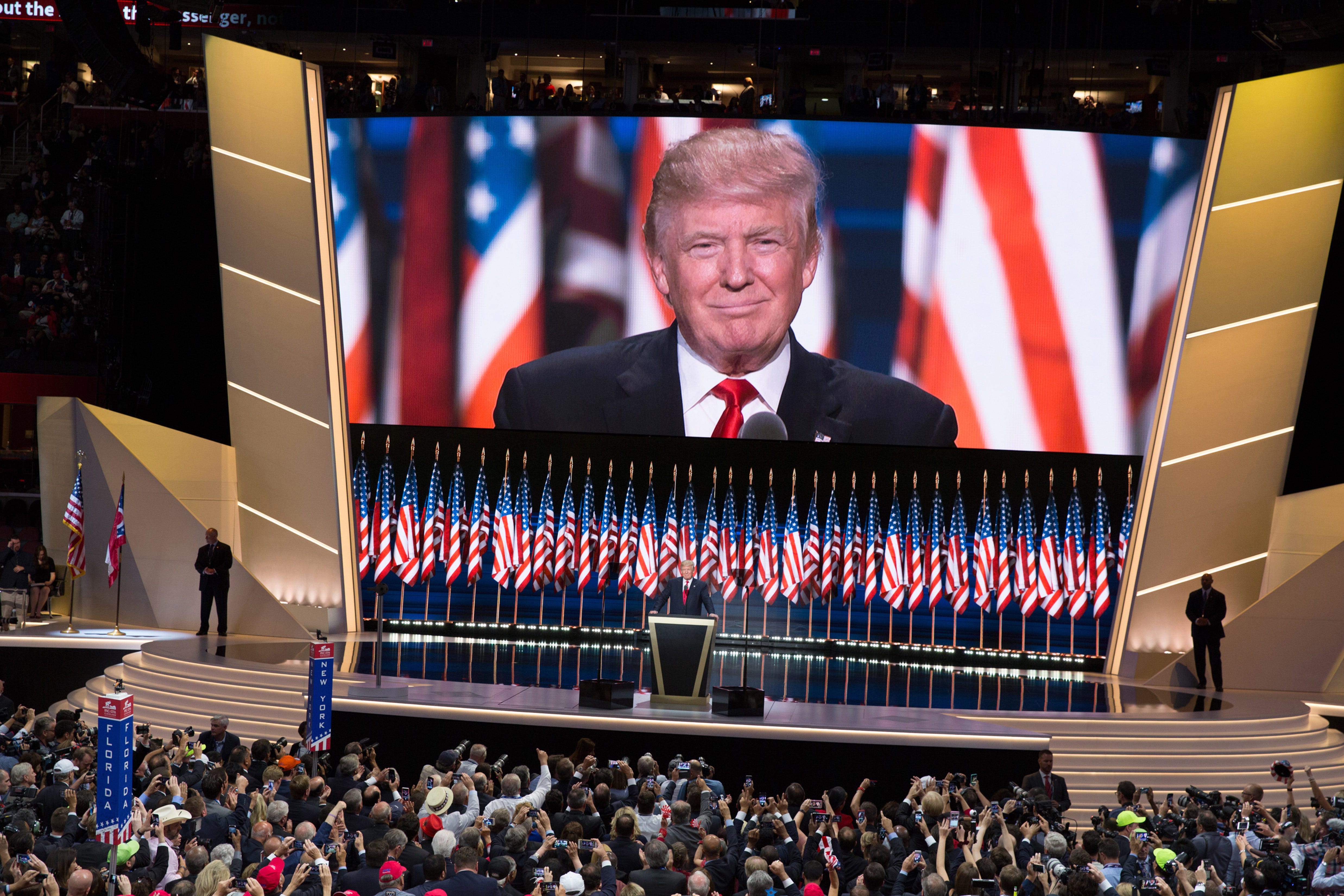 Trump at the Republican National Convention, Cleveland, Ohio, July 2016.