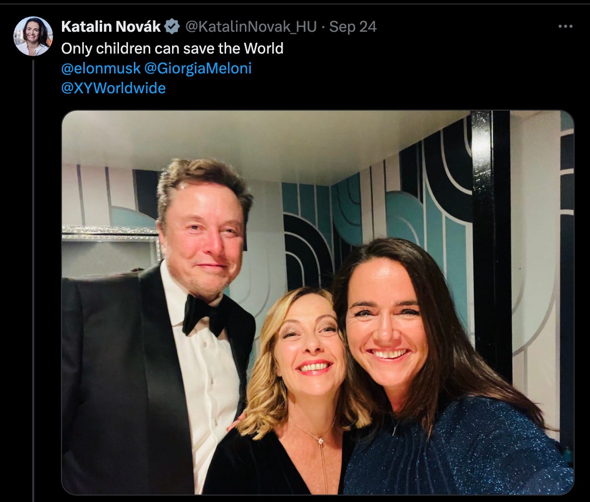 Novák was available to start this initiative because she was forced to resign from the Hungarian presidency in 2023 after she pardoned a man convicted of serial child sex abuse in a state-run childrens’ home. What better comeback than to redouble her commitment to “natural” family values! And so, x-y was born.