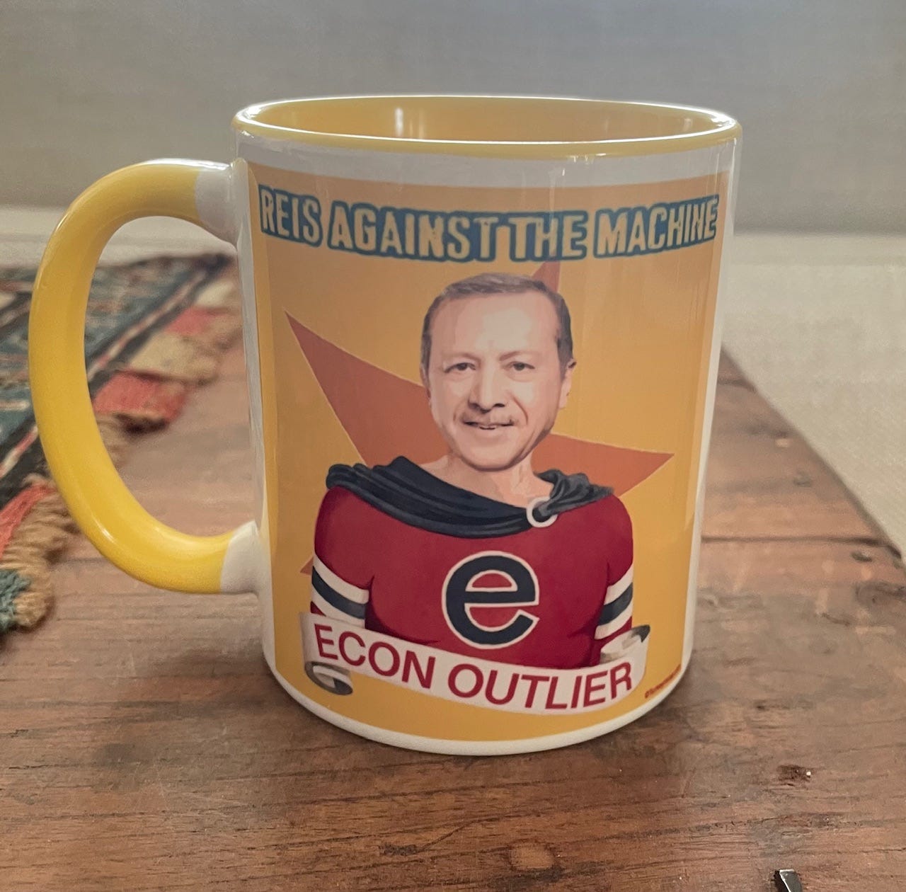 This mug lampoons Erdogan as a self-styled superman and “economic outlier” who is supposedly taking on the financial establishment. (Reis, a military commander title, is also a nickname for Erdogan). It is from my personal collection of autocrat-themed objects.