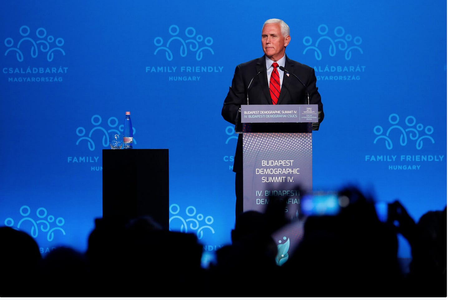 Certainly, Pence was in his element: only men spoke at the main session of the "demographic summit" (Pence famously refuses to be alone with any woman but his wife in any room where food or alcohol are being served). Family Minister Katalin Novak was reduced to the role of moderator and billed as a mother of three children. Pence, who calls his wife, Karen, "Mother," likely approved of this misogynistic move.