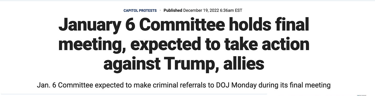Welcome back to Lucid, and a big hello to new subscribers. The weekly Lucid essay will appear on Wednesday, but in view of today’s final Jan. 6 Committee hearing, scheduled for 1pmET, I wanted to give you a roundup of some of my writings on the coup attempt. If you’re not a Lucid subscriber yet, here’s some of what you’ve been missing!
