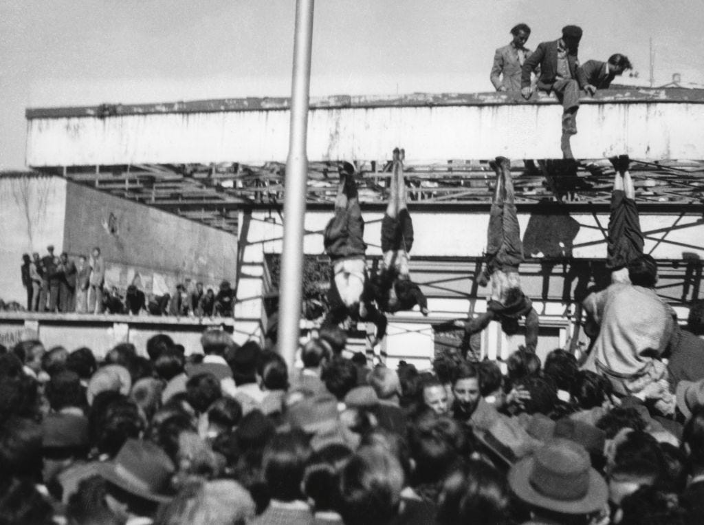 To mark the anniversaries of the deaths of Il Duce and the Führer, this week I am adapting some excerpts from the “Endings” chapter of my book Strongmen, which is being reprinted again due to popular demand. Today’s essay is about Benito Mussolini, and tomorrow’s is about Adolf Hitler.