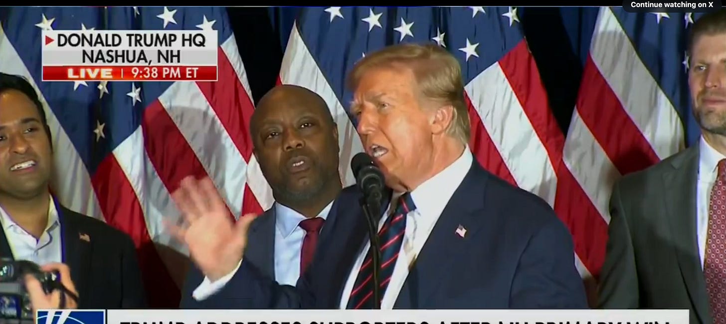 And, then, after a projected Trump win in SC: “The longer I speak, the less you hear of him.” Sen. Scott has been conditioned by Trump to have no needs and find pleasure only in helping his Leader. This unfortunate behavior is familiar to me from writing about authoritarian regimes, as is its outcome: One day Sen. Scott will regret his words, but right now he is fully immersed in the cult environment.