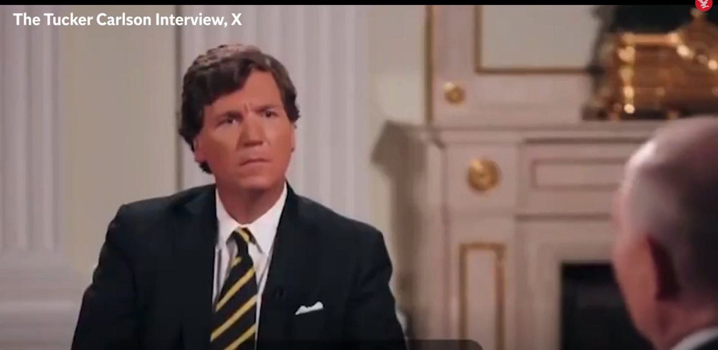 A world away in Moscow, former Fox anchor Tucker Carlson may have thought he would earn points with Russian President Vladimir Putin during their February interview. Putin, a busy warmonger and kleptocrat, had granted Carlson two hours of his time. Surely this would further Carlson's ambitions to be the Joseph Goebbels of today's global far right!
