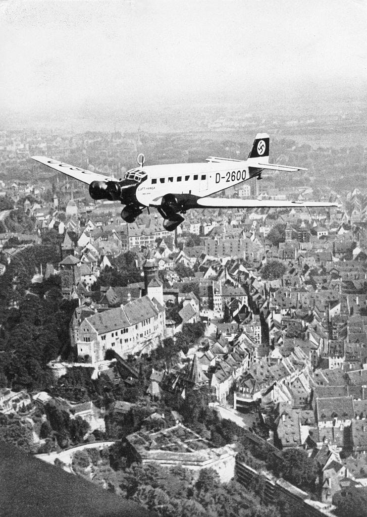 The Nuremberg rally calmed the waters around Hitler after this surprise massacre, presenting him as omnipotent but also adored by ordinary Germans. Triumph of the Will constructs this narrative by starting in the clouds and tracking Hitler as he arrives at Nuremberg airport and emerges to be acclaimed by the people.