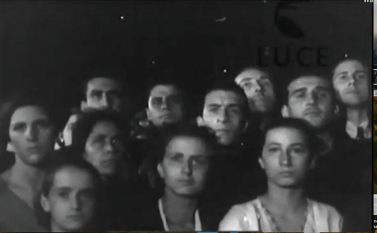 So let’s take a Fascist newsreel of a state rally and see what happens when we go into the crowd. This was one of the most important rallies of the Fascist era: the crowd was assembled in Piazza Venezia in October 1935 to hear Mussolini’s announcement of the invasion of Ethiopia. Italian troops were already ready to strike at the Ethiopian border, so the rally was largely performative in nature. The regime wished to show the world that the invasion had a popular mandate.