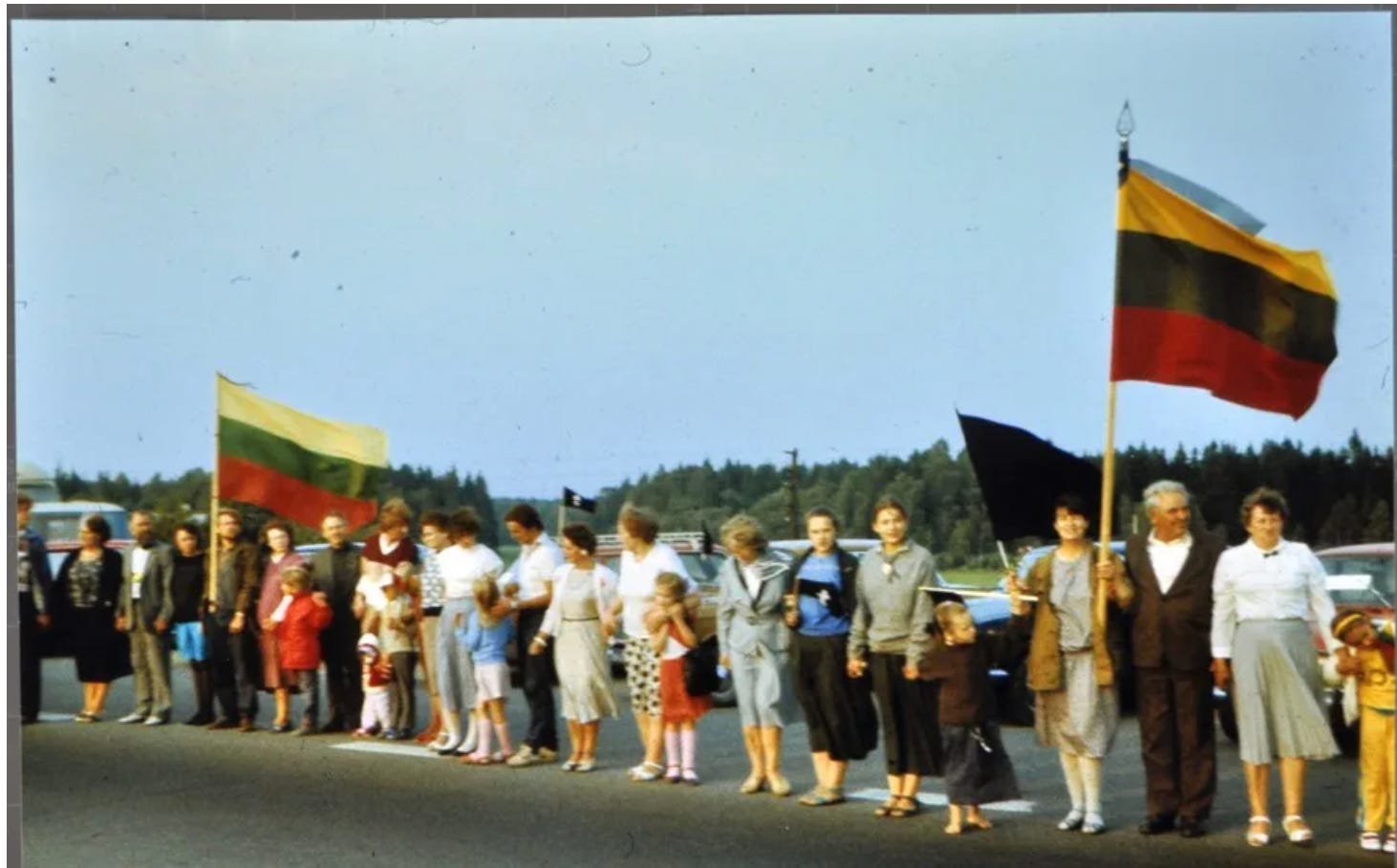 To pay tribute to those who suffered through this difficult history, including in Lithuania, and are threatened now, I close this post with a photograph of the “Baltic Way,” the historic cross-border protest of August 23, 1989 in which two million people from Estonia, Latvia, and Lithuania joined hands and formed an immense human chain. Held on the 50th anniversary of the Molotov-Ribbentrop Pact that preceded the Soviet occupation of the Baltics, it was the largest protest in USSR history. Six months later, Lithuania became the first republic to declare its independence from the Soviet Union.