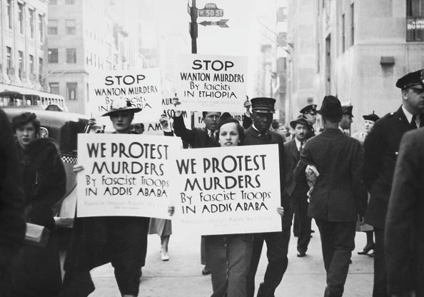 The Italo-Ethiopian War may remain an obscure event to many Americans. Yet it propelled Black and White activists to take to the streets of New York and other cities across the world. It merits our attention as we navigate our own fateful time of mass protest against institutionalized racism and authoritarian aggression.