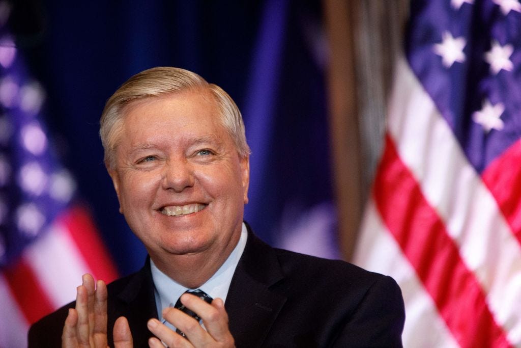 And this is what has happened to Graham, a former military lawyer and national security hawk (including on Russia) whose main cause and priority is now defending Trump —a Putin client— from enemies. His parroting of Trump cult mantras is one measure of his hollowed-out identity as a politician. "I think Donald Trump is stronger today politically than he was before," Graham told ABC in the wake of the indictment as he dismissed the federal charges as "ridiculous."